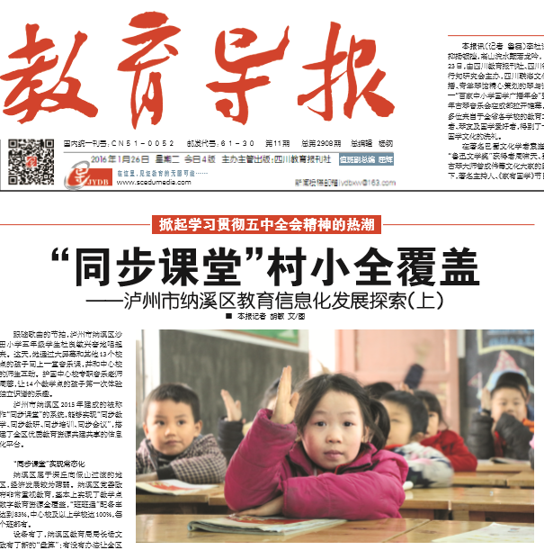 影響力:多次接受國家、省、市等教育主管部門領導和專家的調研、指導并受到肯定。2015年10月28日,教育部科技司雷朝滋副司長在實地調研該系統的應用后,給予了高度評價,并支持納溪模式能被廣泛運用。